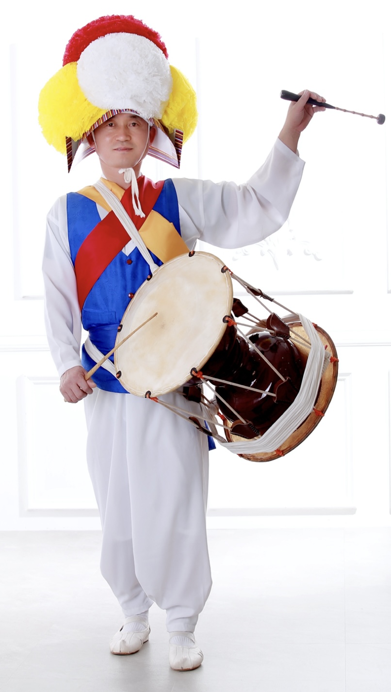 장구잽이의 복색은 흰 바지, 흰 저고리, 남색 조끼, 황적청의 삼색끈, 고깔을 착용한다.