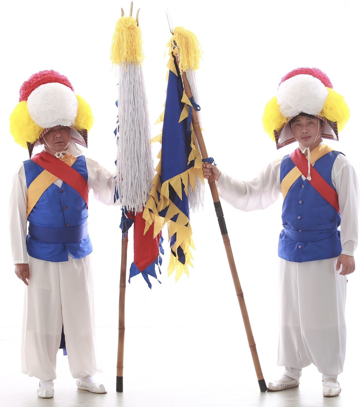 기수 복색은 흰 바지, 흰 저고리, 남색조끼 위에 남색 조끼, 황적청 삼색끈을 두른다. 머리에는 전립이나 패랭이를 쓴다고 하는데 필봉굿에서는 고깔을 쓰고 있다.