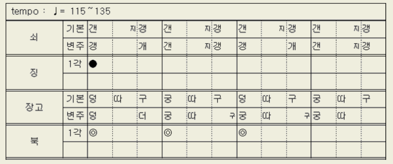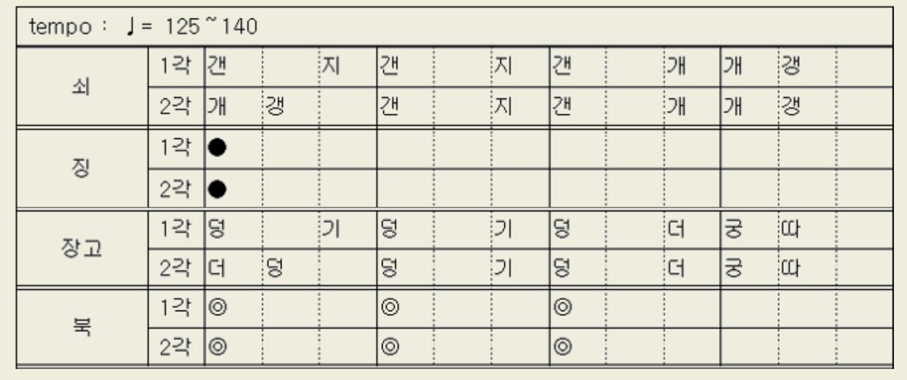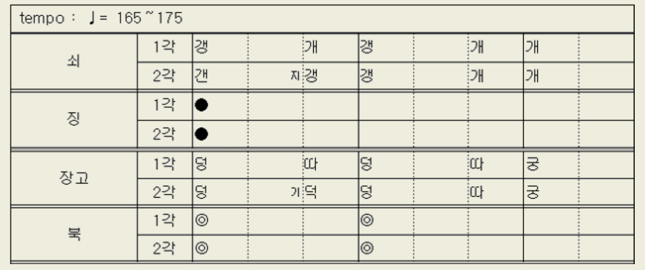- 1채굿은 빠른 갠지 가락으로 손바닥을 한번만 마주치고,
