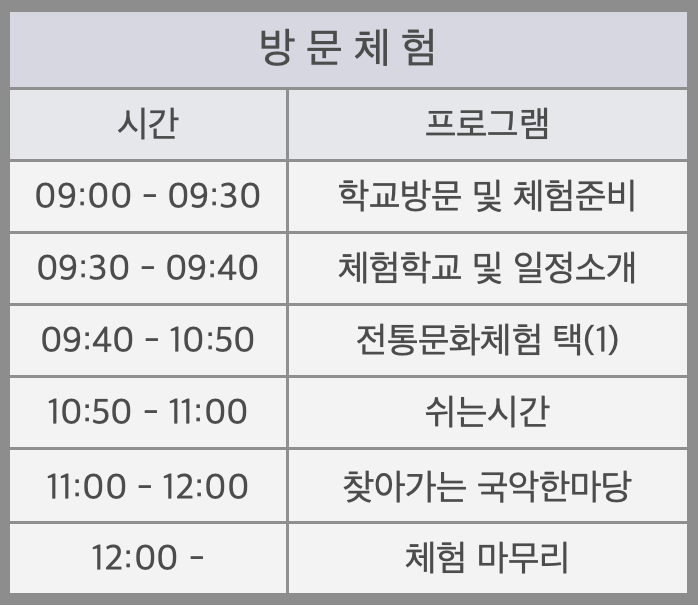 전통문화체험학교 프로그램 일정