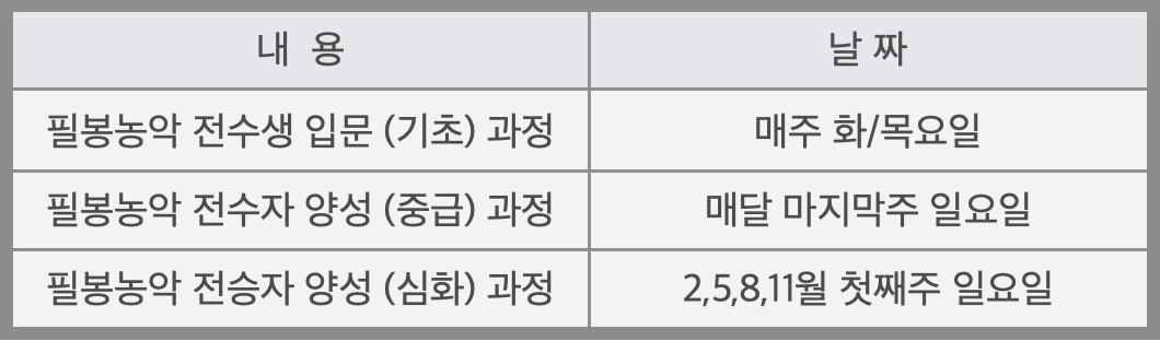 국가지정 무형유산 필봉농악의 전승 및 보전을 위한 심화교육 프로그램입니다.